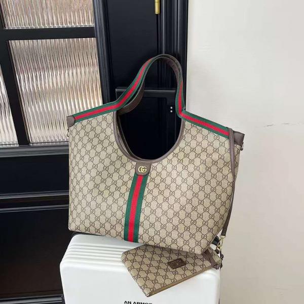 Gucci_ Giglio large tote bag featuring beige and dark brown GG canvas Bag with dust cover premium quality