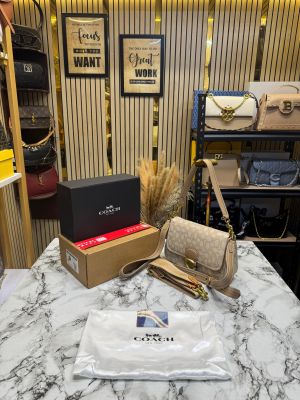 Coac_h Tabby Signature Canvas Jacquard Shoulder Bag With Double Og Box And Dust Bag (Khaki-C355)